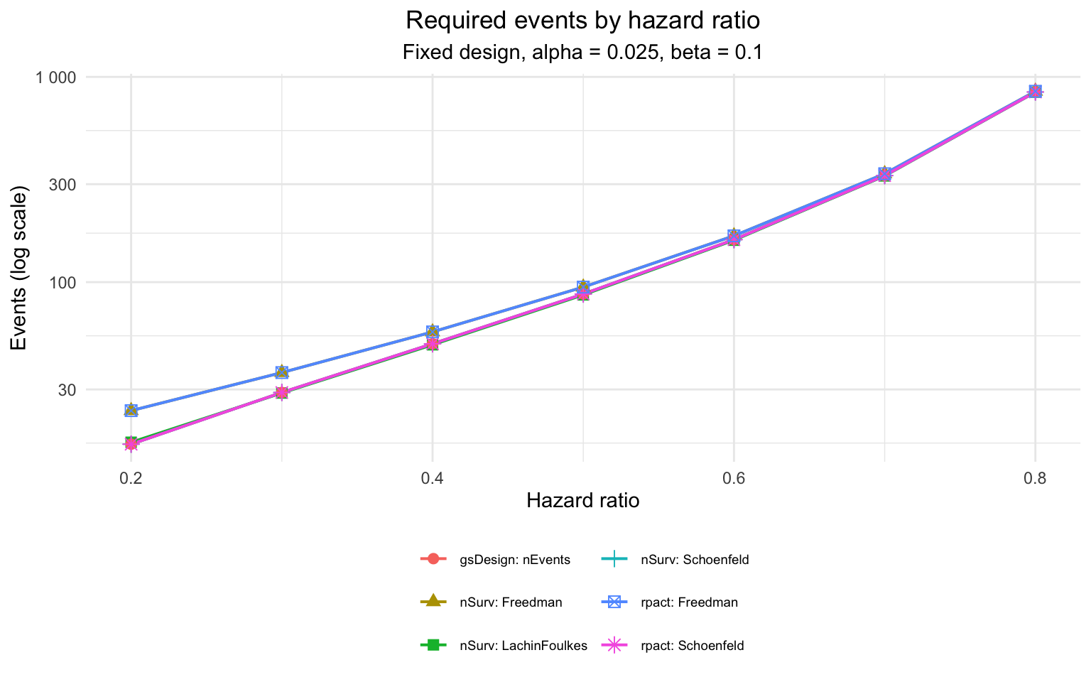 | gsDesign::nEvents | Schoenfeld | 330.4 | – |